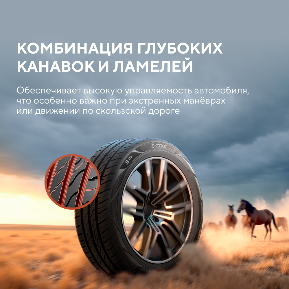 Attar S01 — современная летняя легковая шина для эксплуатации на дорогах общего пользования. Модель сочетает устойчивость, управляемость и комфорт с хорошими показателями топливной экономичности и износостойкости. Она рассчитана на широкий диапазон летних температур и подходит как для городских поездок, так и для трассы.