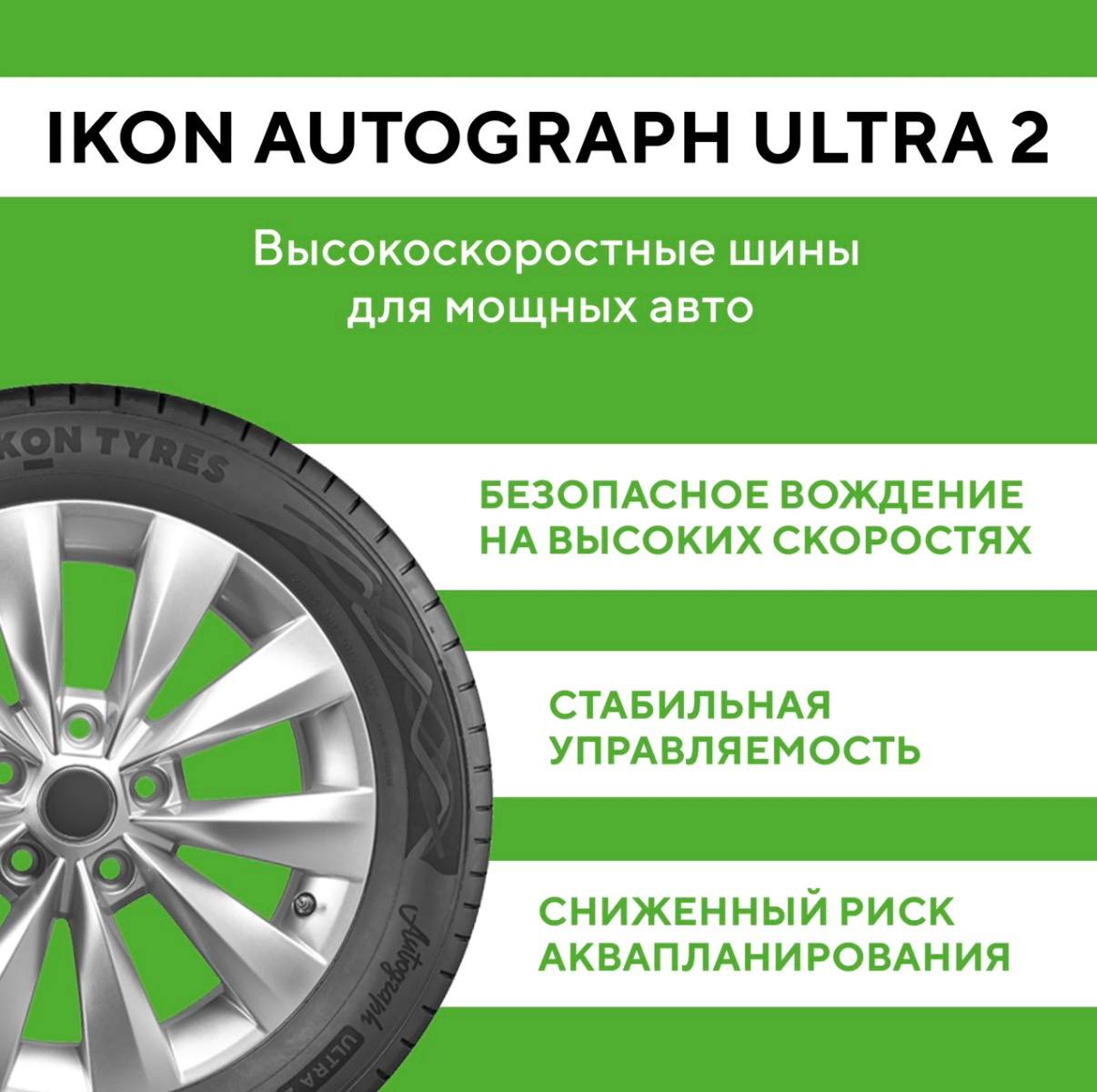 Ikon Autograph Ultra 2 - премиальные летние шины для мощных и спортивных автомобилей, созданные для уверенного и безопасного вождения в любую погоду даже на высоких скоростях.